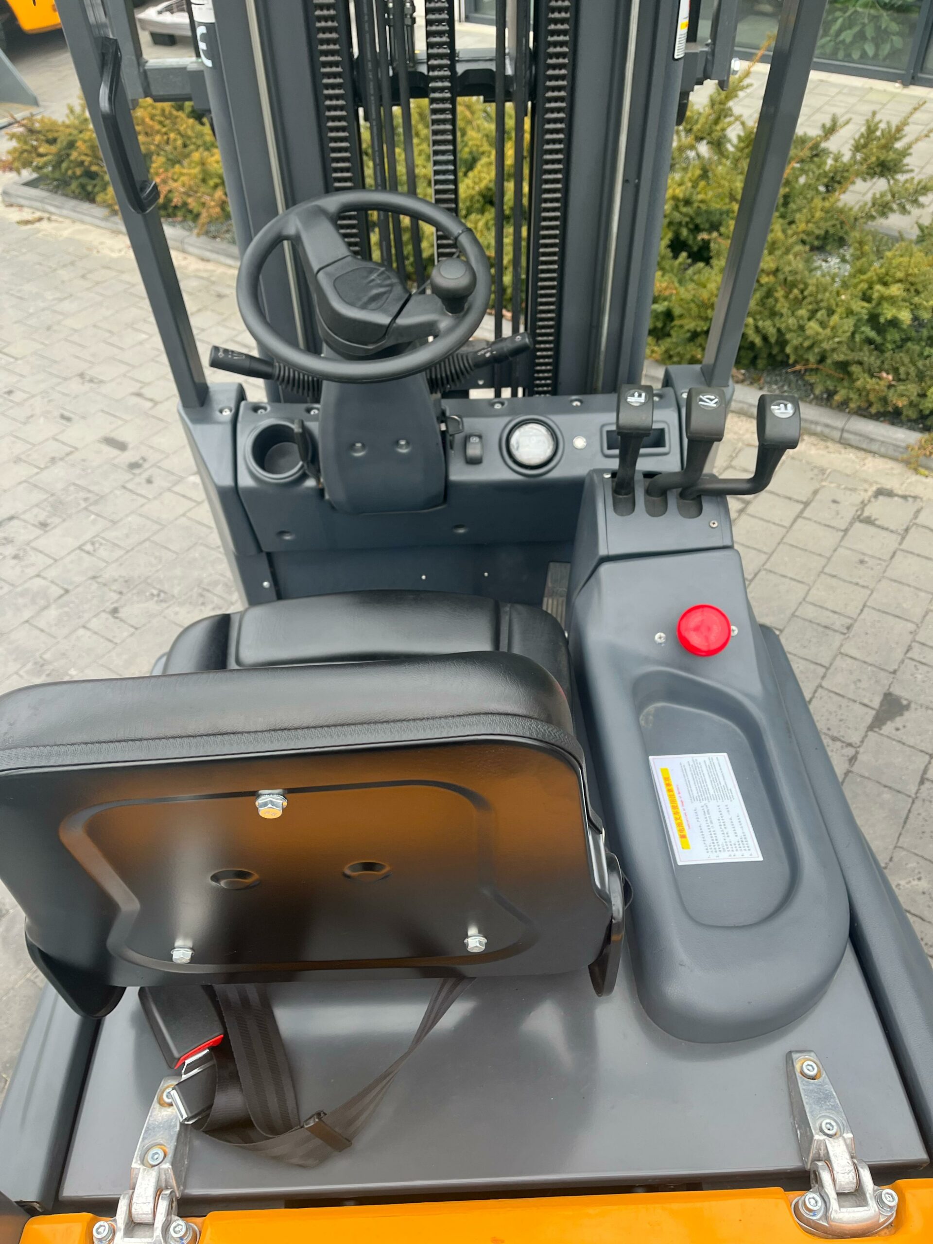 Die Arbeit des Bedieners erfordert Komfort und präzise Kontrolle. Die sitzende Bedienung des Staplers garantiert hohen Komfort während langer Arbeitsstunden, und die optimale Kabinenhöhe (1980 mm) bietet ein breites Sichtfeld. Robuste Polyurethan- oder Vollgummireifen sorgen für Stabilität und hervorragende Dämpfung. Die verstellbare Gabellänge von 220–606 mm ermöglicht den Transport unterschiedlichster Lasten und erhöht die Vielseitigkeit des Fahrzeugs erheblich.